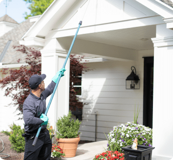 We knock down any wasps nests and cobwebs throughout the eaves of the home.